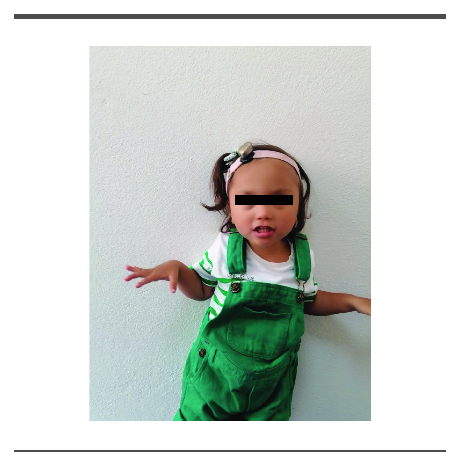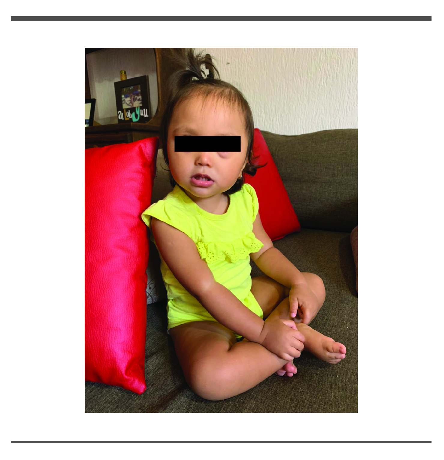 Paciente femenino de 2 años 4 meses de edad, cuenta con los siguientes antecedentes papá de 34 años al nacimiento originario de Quintana Roo, mamá de 28 años originaria de Puebla, consanguinidad negada. Hermana de 4 años sana. No hay antecedente familiares relacionados a patología de base.