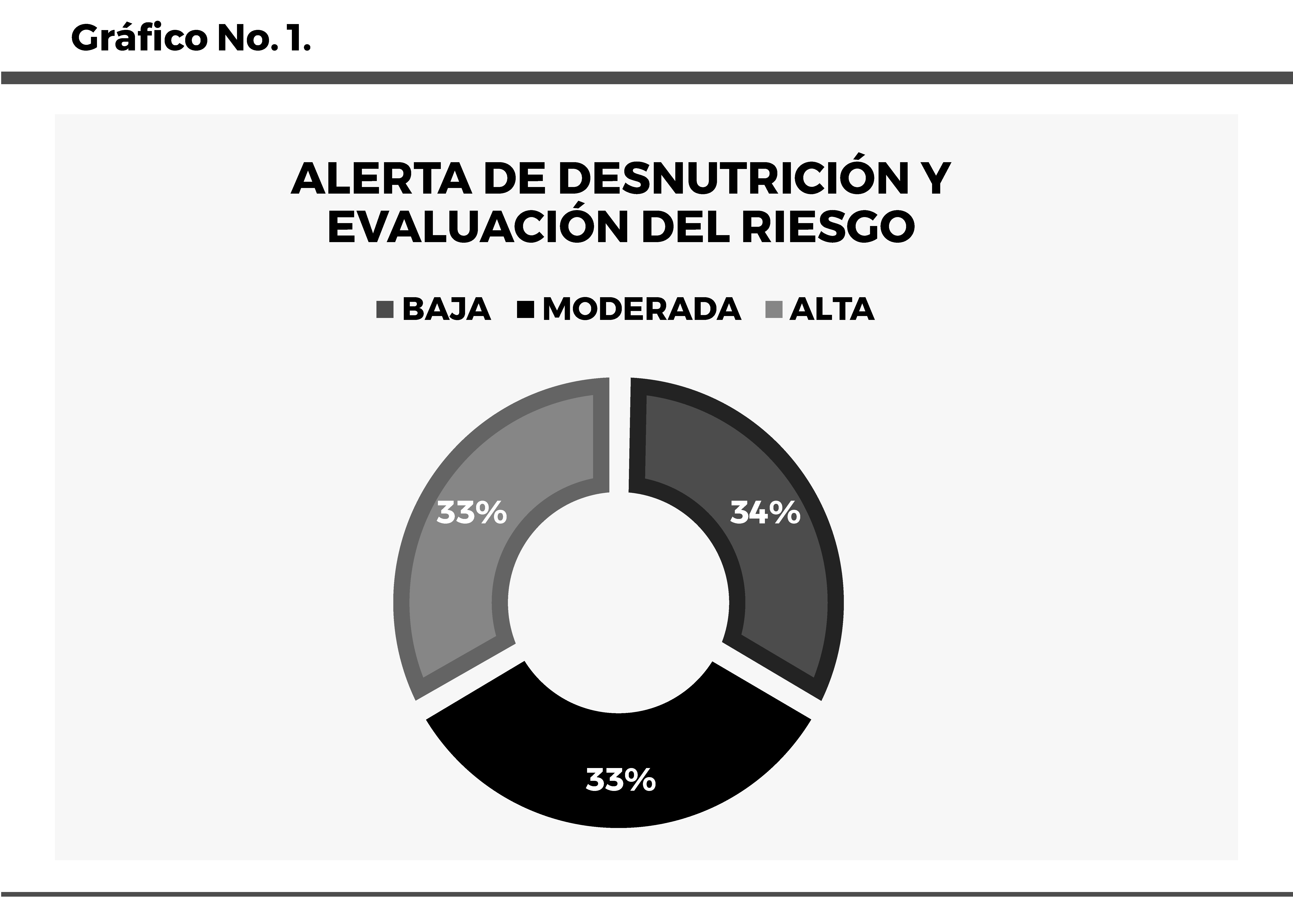 Nota: La gráfica muestra la distribución porcentual de los participantes según el nivel de riesgo nutricional identificado, destacando una porción similar entre los niveles bajo, moderado y alto. Elaboración propia.